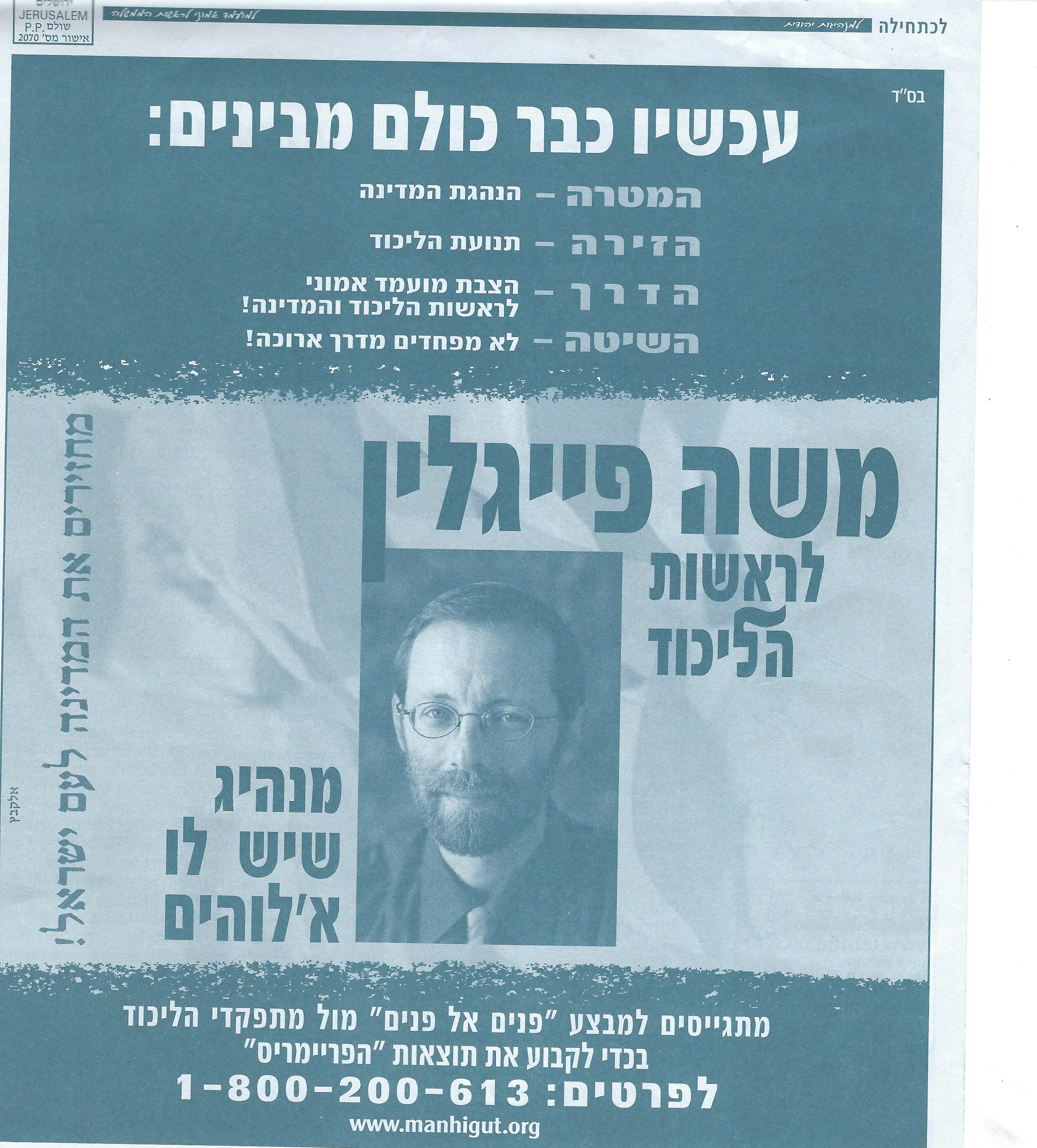 (אגב - שים לב שבכתבה לא מוזכר פייגלין ולו ברמז)...