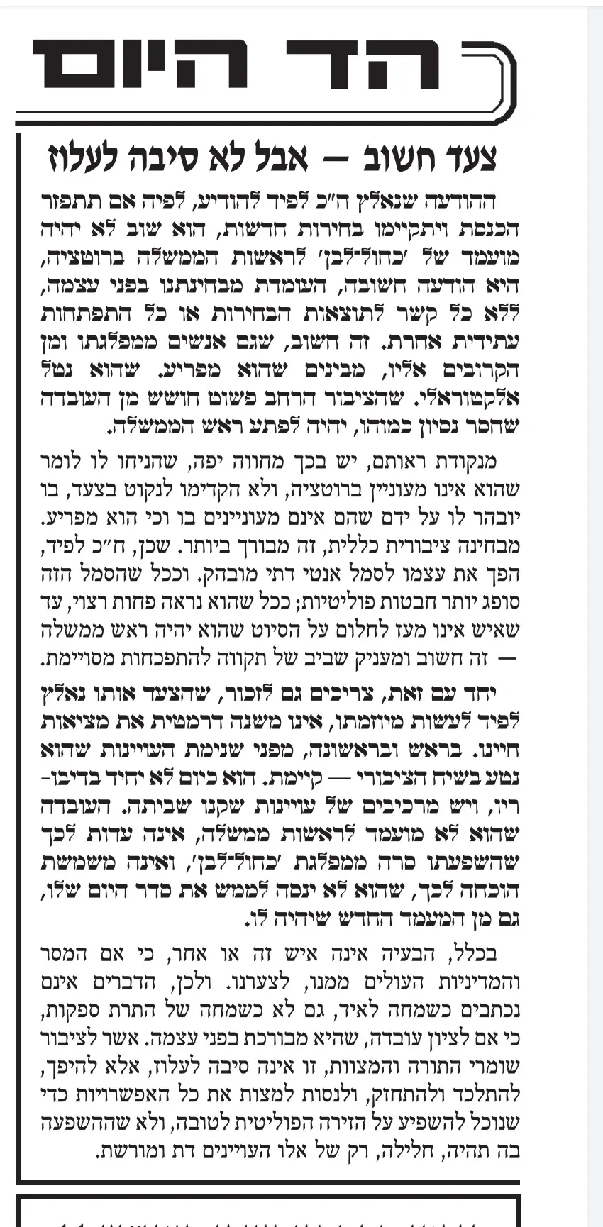 נתניהו צריך להציע לימין החדש הצעה שתחבר אותם לבלוק טכני