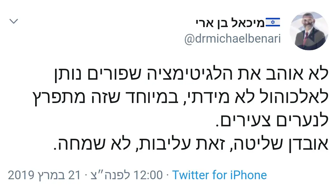 ברור שהשאלה היא מה הבינו הפוסקים. הרי "המורה הלכה מתוך משנה הרי זה מבלה עולם ...". לא סתם ישנו איסור לכתוב את התורה שבעל-פה. את תורת חז"ל אנו מקבלים מהצדיקים ומהפוסקים שבכל דור, ולא לפי מה שבא לנו. כמעט בכל הישיבות (אולי אני מגזים, אבל בהרבה ישיבות בוודאי) מזהירים מנזקי השתייה, מעוררים את הנוער להיזהר ומלמדים את הפוסקים שהסתייגו מפשט הדברים. אז יפה עשה מיכאל בן-ארי שצייץ את הנאמר בישיבות גם בטוויטר.