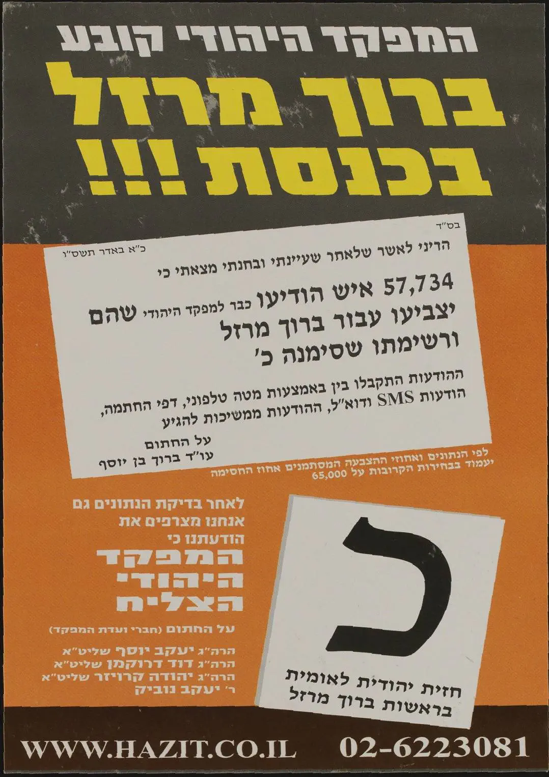 חצי מנדט יעניקו לג', מכתב של הגר"מ מאזוז יביא 15,000-20,000משיב