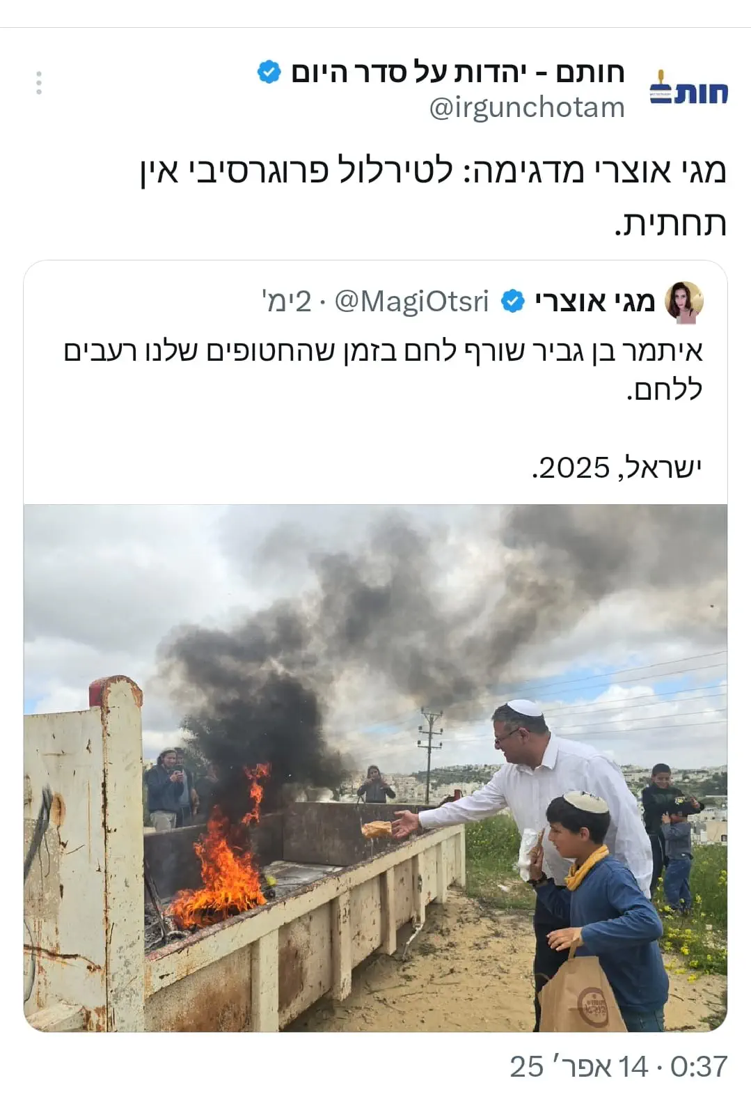 זה אותו סמוטריץ' שבמקביל אישר מסע הרס אכזרי בגבעות החלוציות של יהודה ושומרון בשבועות האחרונים? כן, בדיוק.