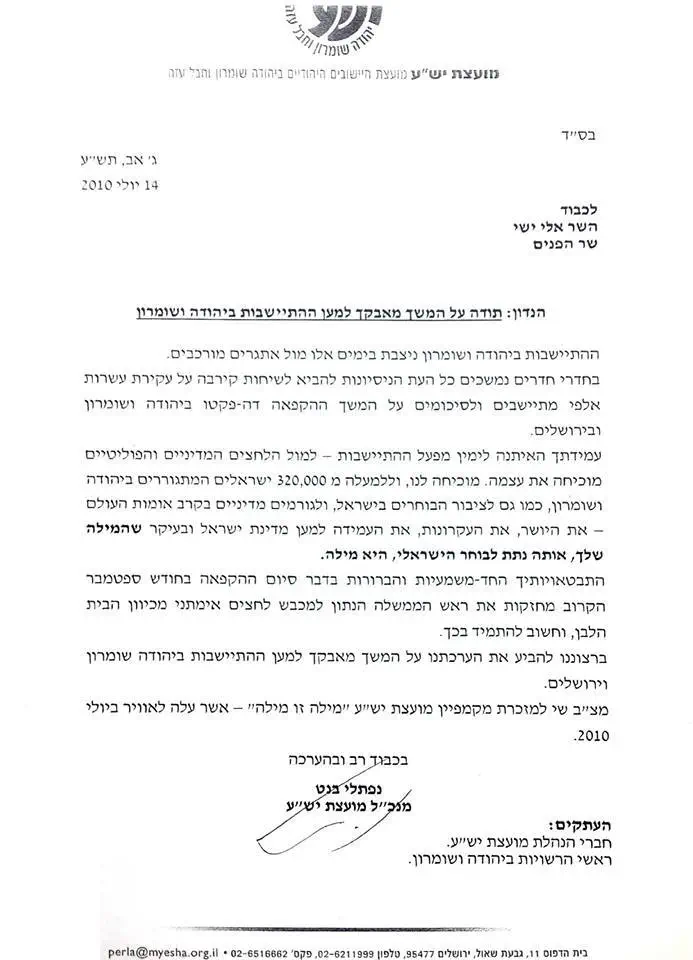 היייתה הקפאה עמוקה בשנתיים האחרונות, ואורי אריאל העיד בבית וגן בפני חברי תקומה, שלא פעם ולא פעמיים הוא ביקש שבנט יעלה את הנושא בפני ביבי - אך בנט לא הסכים. זה פשוט לא עניין אותו.