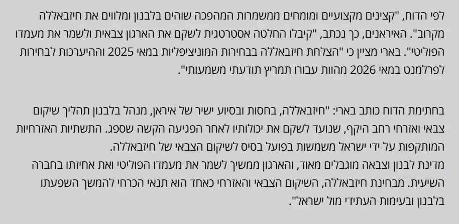 צבא לבנון מחזיר נשק לחיזבאללה: הדוח שחושף מה קורה מאז הפסקת האש