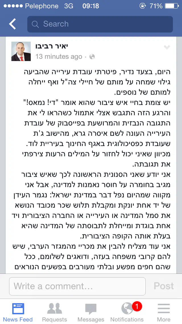 הודיתי על מהירות התגובה, עם תקוה למהירות של פעולה וגם לפירסומה.