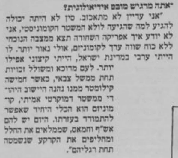 אבל אם הכוונה היא שהייתי נולד יהודי עם כל תכונות נפש היהודיות שיש לנו כיום, רק הייתי במקומם. שהיו לנו ליהודים עשרות ארצות ענקיות, בנוסף לארץ ישראל ארצנו המקורית, והייתה עוד איזושהי ארץ קטנטונת שבקושי רואים אותה על המפה, ומתגורר שם עם שוחר שלום, שזו ארצו היחידה. האם היינו זוממים חלילה לנגוס חלקים מארצו היחידה של העם הקטן עם הארץ הקטנטונת היחידה? התשובה היא לא ולא! במיוחד מי שניחן במידות שמאלניות של סבלנות וליברליות. נהפוך הוא, היינו עוזרים לעם שוחר השלום להחזיק בארצו היחידה.