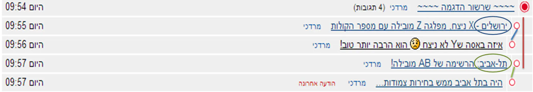 2. להודעה ספציפית זאת (ההודעה הראשית) הגיבו את שם העיר בלבד עם עוד פרט יבש או 2 ועל זה תתחילו את הדיון (ראו דוגמה)