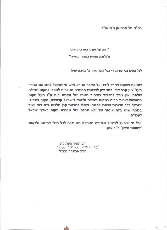 לאור הוראת הרבנים הגאונים שליט"א להצביע עבור ראש העיר הרב מאיר רובנשטיין ולרשימה המאוחדת ביתר- גשס שמח אני לקיים את הוראתם ומסיר אני את מועמדותי לראשות העיר וכן את הרשימה יד לתושב וסומך אני את ידי על ראש העיר הבא שיעשה ככל שביכולתו לשנות ולשפר ולדאוג למען האזרח הפשוט.