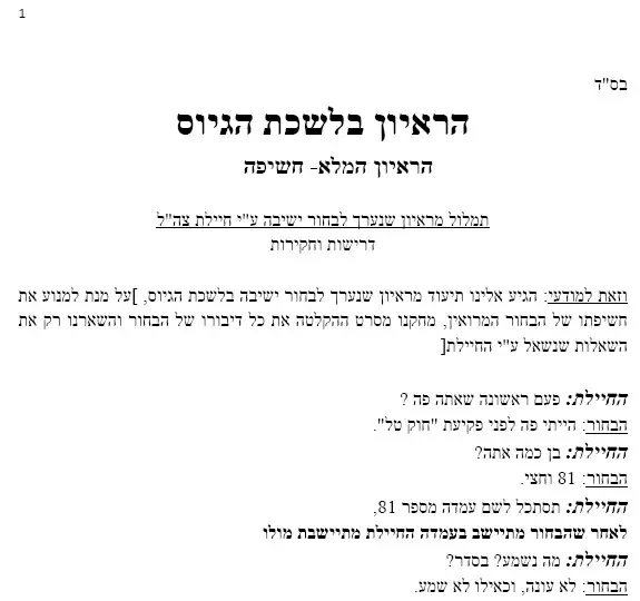 במהלך כמה שעות של אבחונים, ראיונות ובדיקות רפואיות, נקבעים לנער הנתונים שקובעים את מנעד התפקידים והיחידות שבהם יוכל לשרת. אבל כצפוי, רבים מהצעירים החרדים מתייחסים אליו בביטול. מאבחנות מלשכות הגיוס השונות מספרות שרבים מהם מסרבים לענות אפילו על שאלות בסיסיות כגון מה כתובתך או מספר הטלפון בבית.
