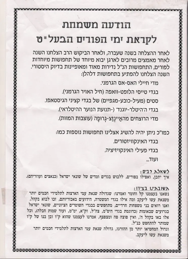 איןו שום היתר לרבני תקלה. הם מצווים באותן מצוות ואין להם אלוקים אחר. מה שהם "יודעים" אף אחד לא יודע, כי הם לא מוסרים את המקורות ולא נותנים לציבור להתגונן. ממש שיא הצדק. דיקטטורה בהתגלמותה. עכשיו הםגם מוסיפים ש15 אחרים חשודים ב"אותם מעשים". יופי, לשון הרע כללי על כל רבני ישראל עליהם מוטל צל, כי אף אחד לא יודע מי הם 15 ה"אשמים" לדעת פאנל בית דין שדה זה. טוב שיש לנו יוצאי חבר העמים שזוכרים את הפאנלים שם ואת הקג"ב.