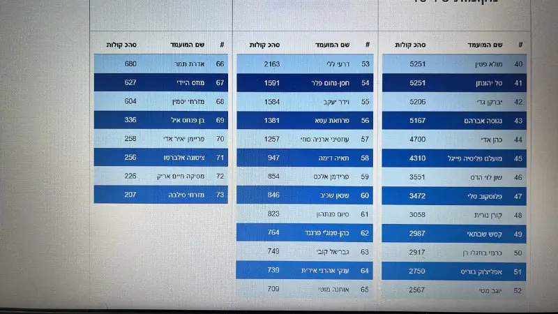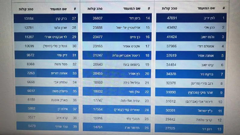 מעניין אותי כמה בפועל הצביעו לכל מועמד (במספרים מוחלטים) כולל הכי קטנים...