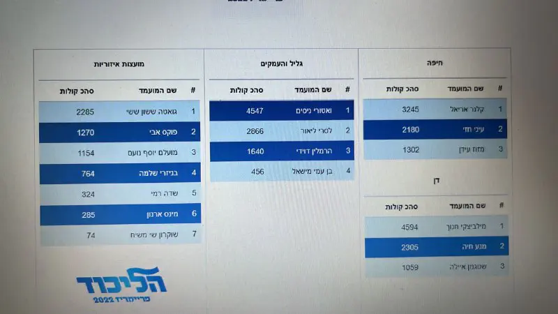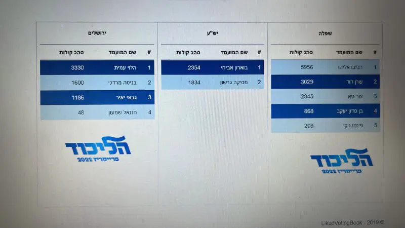 ובאתר הליכוד לא ראיתי תוצאות.