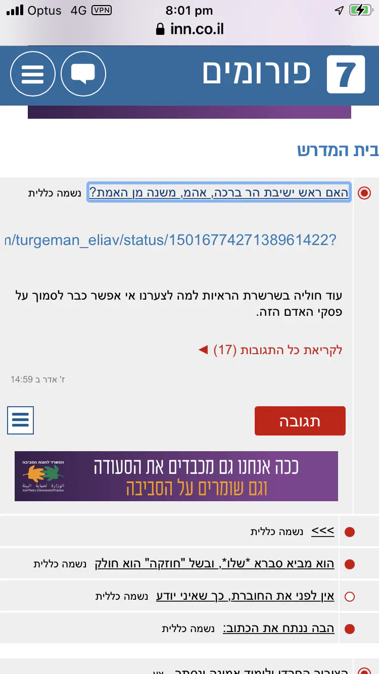 תימה איך טרם הבאת את ההבלים של שביעי שבוע שעבר בנושא>>אריאל יוסף