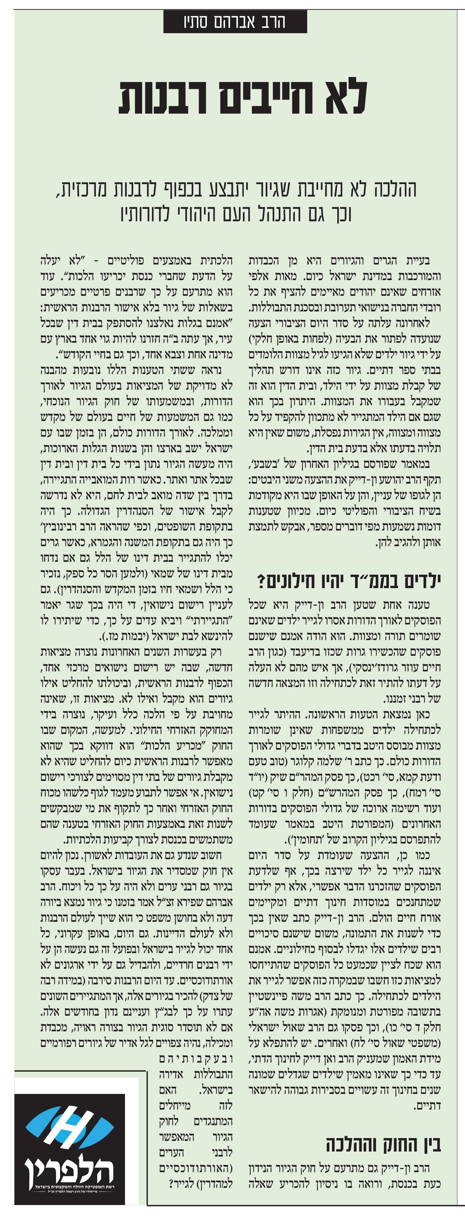 (ותרשו לי בבקשה לא להתייחס לימינה כמפלגת דת"לית).