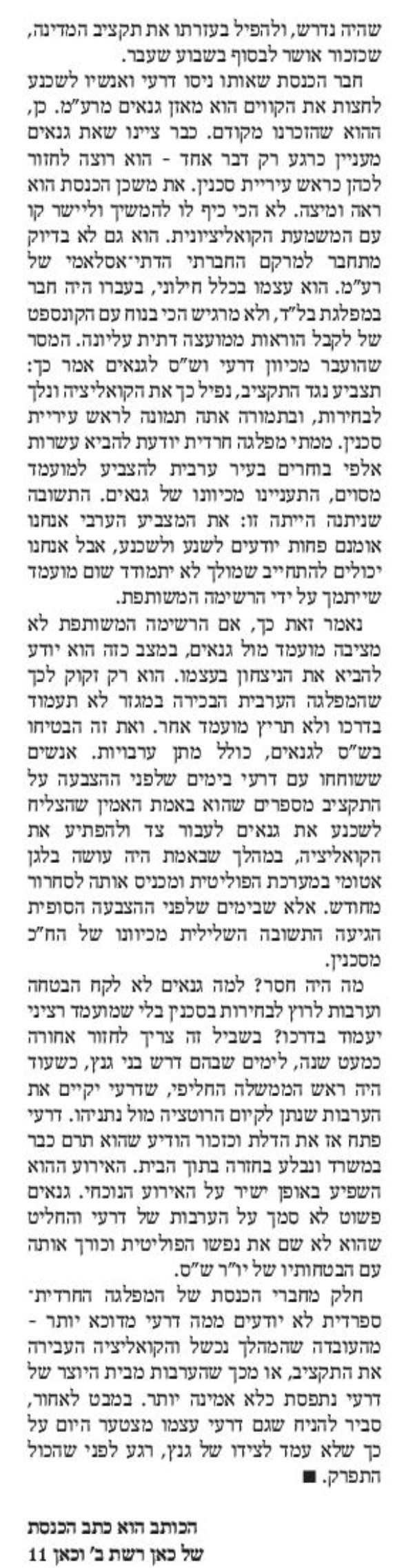 אף אחד מהשינויים שבכתבה לא היה מנוגד לעמדת הקואליציה, וכל אחד ואחד מהם לא היה עובר אם היה מנוגד לעמדת הקואליציה.