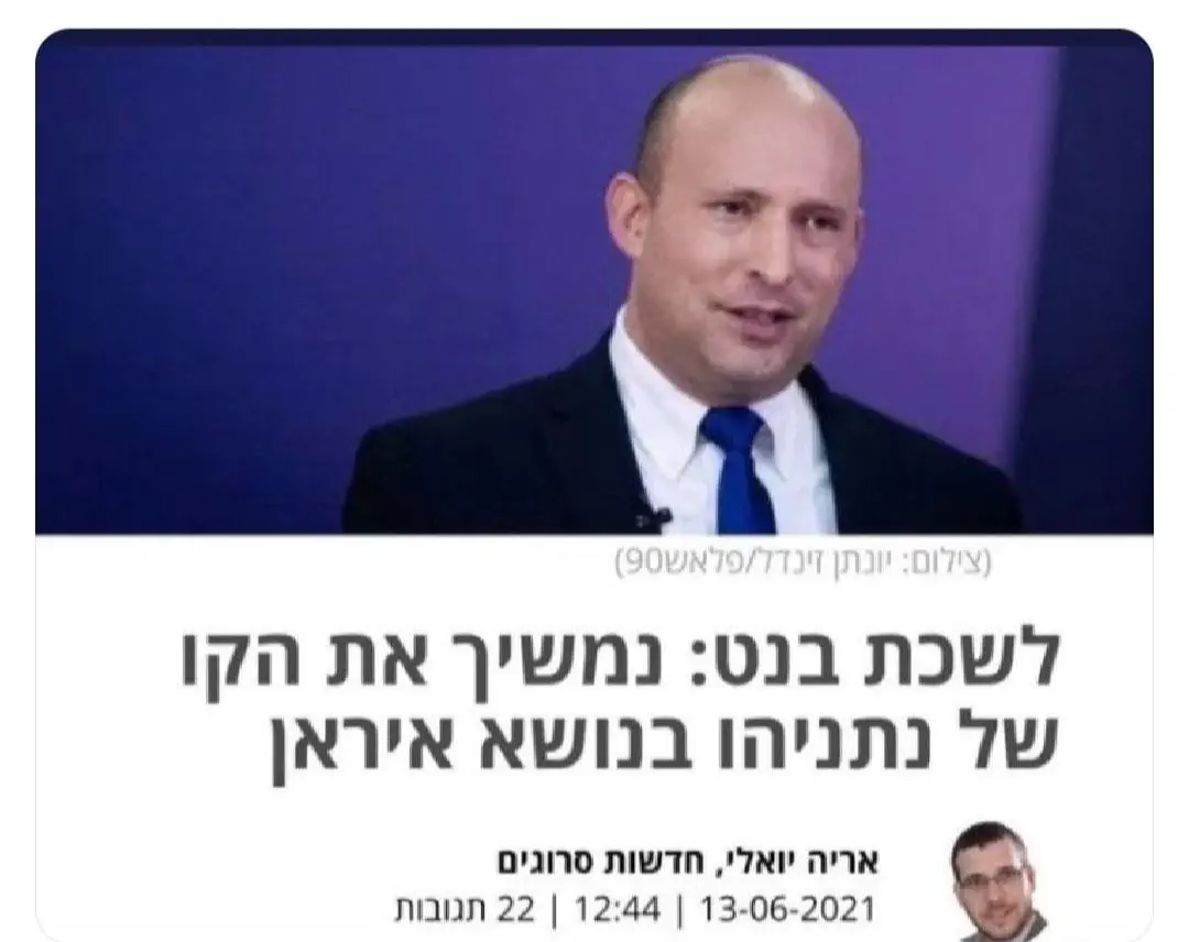 וויאנט: בנט טוען שנתניהו הזניח את האיום האיראניעץתאנה