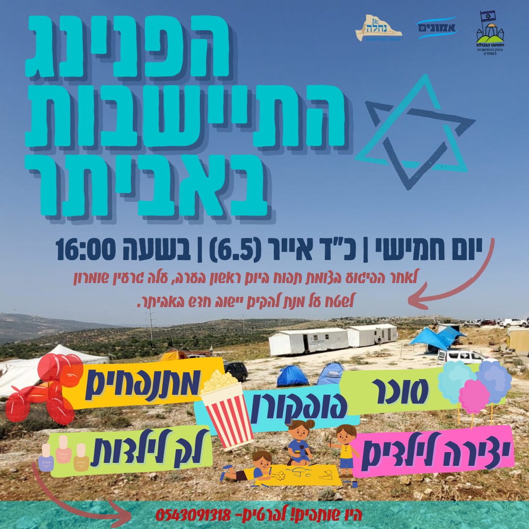 בקריאה להקמת ישובים חדשים ולחיזוק גרעין המשפחות שעלו לאביתר ניפגש כולנו לשבת משפחות בשטח