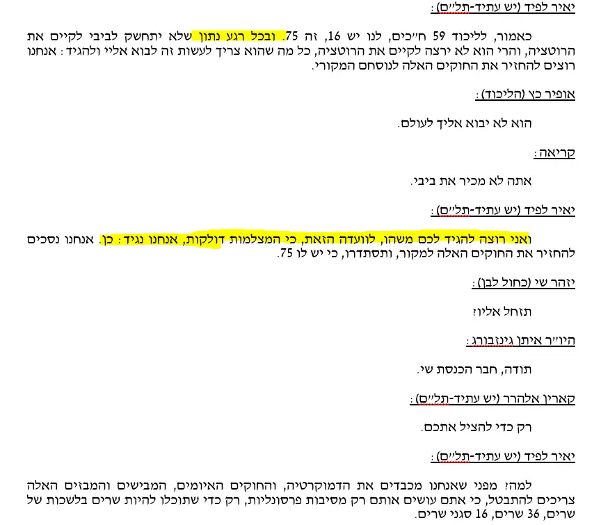 שים לב לביטויים הללו (צילום מתוך הפרוטוקול) -אריאל יוסף