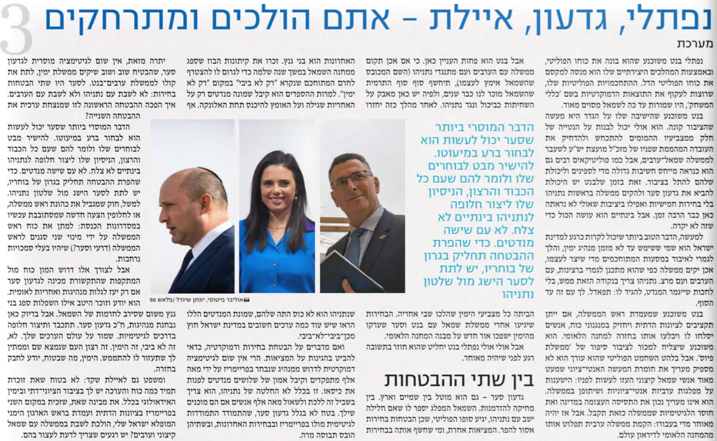 כל עוד בנט משאיר את החלופה הזו פתוחה, סער לא יבוא ולא תהיה ממשלת ימין.