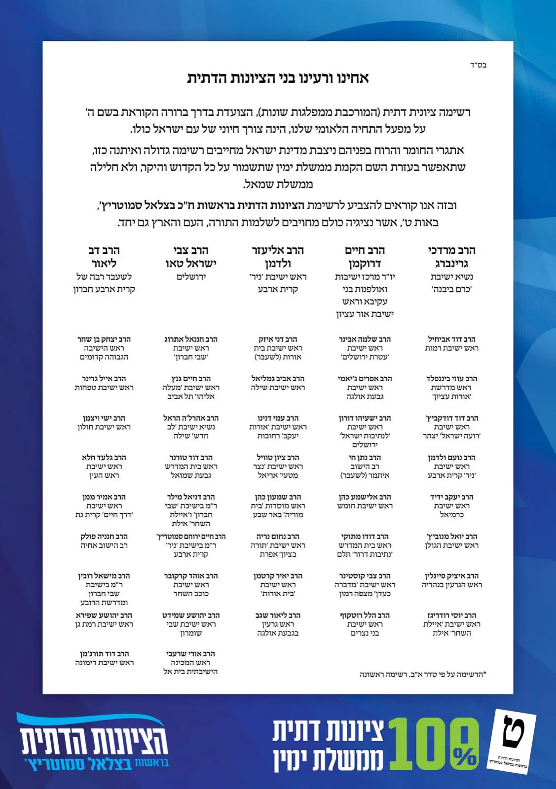 אילו רבנים יקראו להצביע "ימינה"?אפטרשייב1900