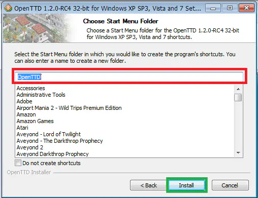 תבחרו(או תרשמו) את שם התיקייה שאתם רוצים ל"התחל", ואז תלחצו על Install.