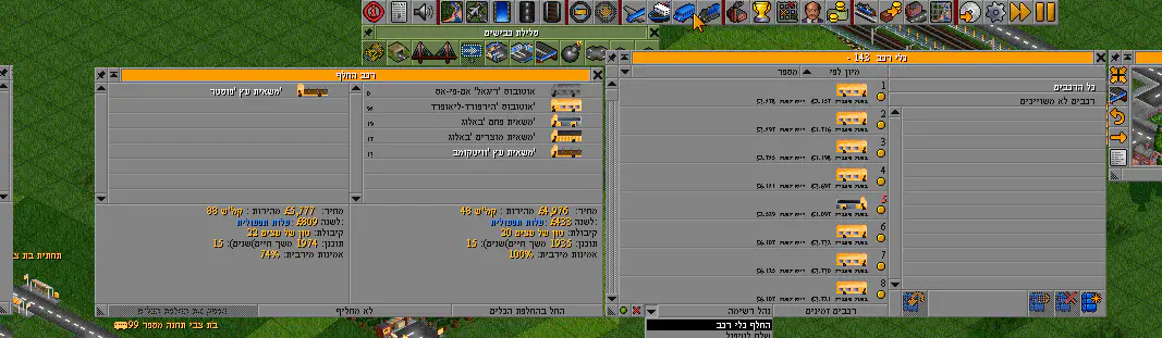 ) ונמקם אחד כזה במקום שמחובר לכבישים (שימו לב לכיוון) בעיר שלנו, נבחר "רכב חדש" ונבחר משם אוטובוס (בדרך כלל הראשון ברשימה), ולאחר מכן נקנה אותו. - בחלון החדש שיפתח נלחץ על יעדים (חץ ימינה) ואז "עבור אל" ונלחץ על שתי התחנות שבנינו קודם.
