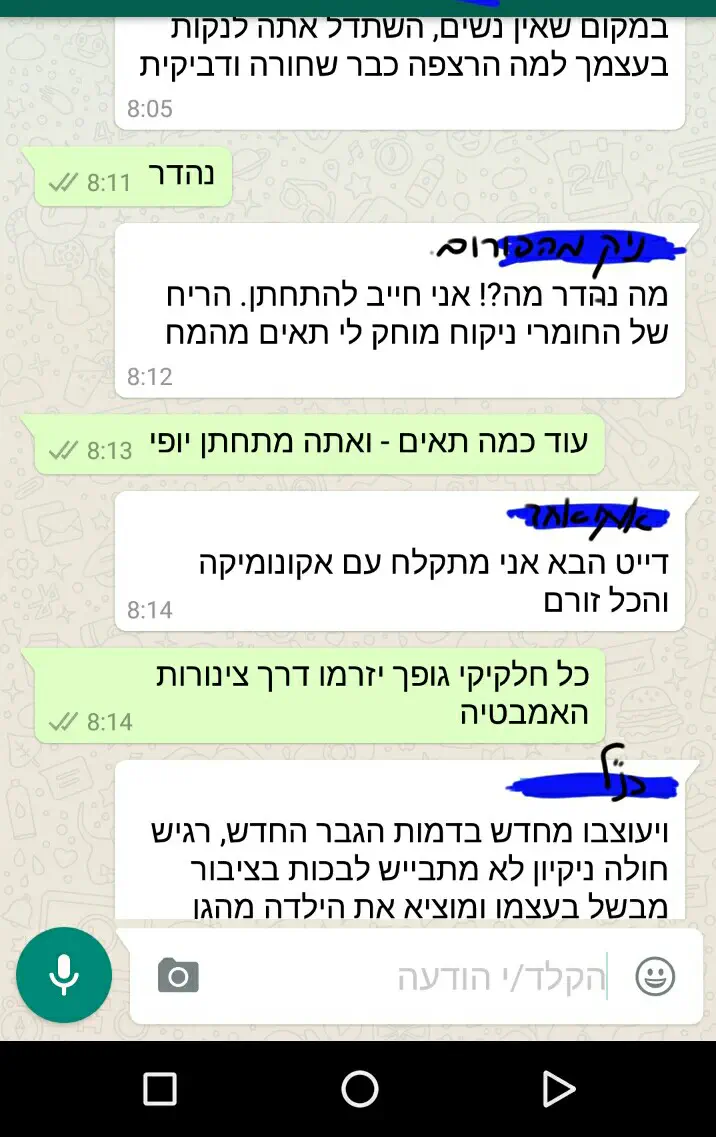 ותן טלשנה, שנה שלמה שחבר ישב עליי שיש לו מישהי שמתאימה לי ושאצא איתה. שנה מרחתי אותו ו"שכחתי" מזה לפרקי זמן ארוכים (היו לי הסיבות שלי) עד שבסוף הסכמתי לבדוק את זה, ואז פנה גם אליה והדייט יצא לפועל.