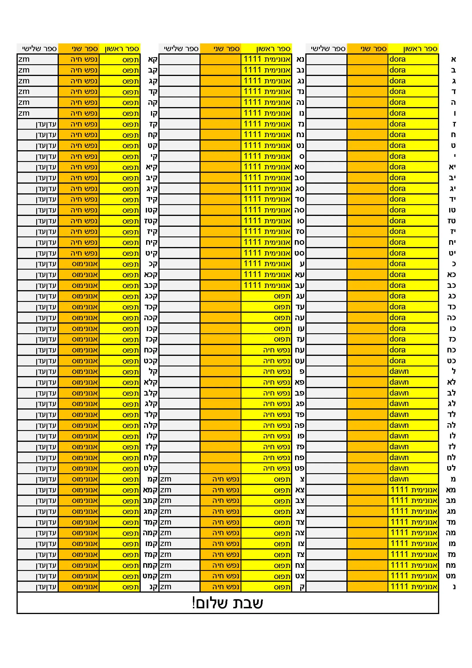 אהבת חינם: שני: א'-ו', שלישי: מ"א-מ"טלבי ובשרי
