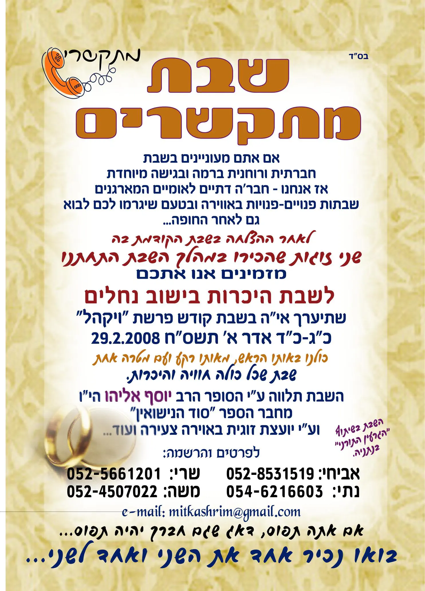 ומנגד מי שנראה לו שייך יכול ליצור קשר במסר"ש