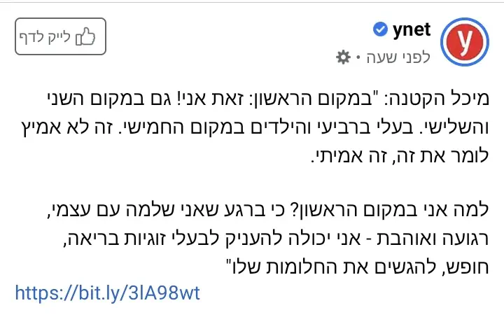 נ.ב - אני לא מתייחס אליה אלא לאמירה שלה. אני לא יודע איך היא מתנהגת בחיים שלה, ולא על זה כתבתי (ואני מאמין שהיא אדם טוב). אלא כתבתי על הדעה מצד עצמה, על האמירה, שאני לא מסכים עם הדרך הזאת (וגם יש סיכוי שהיא בכלל לא התכוונה למה שכתבתי, ולא הבנתי אותה נכון, ככה שכתבתי על הדרך הזאת מצד עצמה בלי קשר אליה). שחס ושלום לא ישמע כאילו אמרתי עליה לשון הרע.