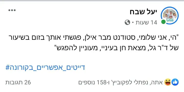 (גילוי נאות, אני הולכת כרגיל לעבודה, אז לא ממש מרגישה את הסגר, אבל בקטע של דייטים זה מבאס..)