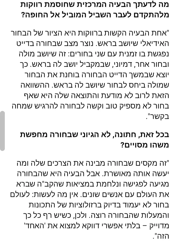 אני ממש מקווה שבתהליך הזה את לא מרגישה שהנה עוד דייט מיותר, עוד הצעה לא קשורה,