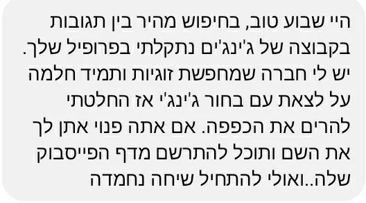 שהאנרגיות החיוביות שהבאת עם ההודעה הזו, תשפיע גם על אחרים להעלות הילוך ולסגור עניין.