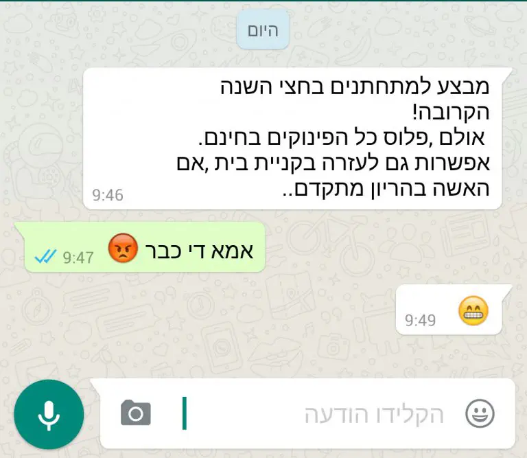 אם הצד השני עונה : ״יהיה סגר בחנוכה״ - תתחתנו איתם.