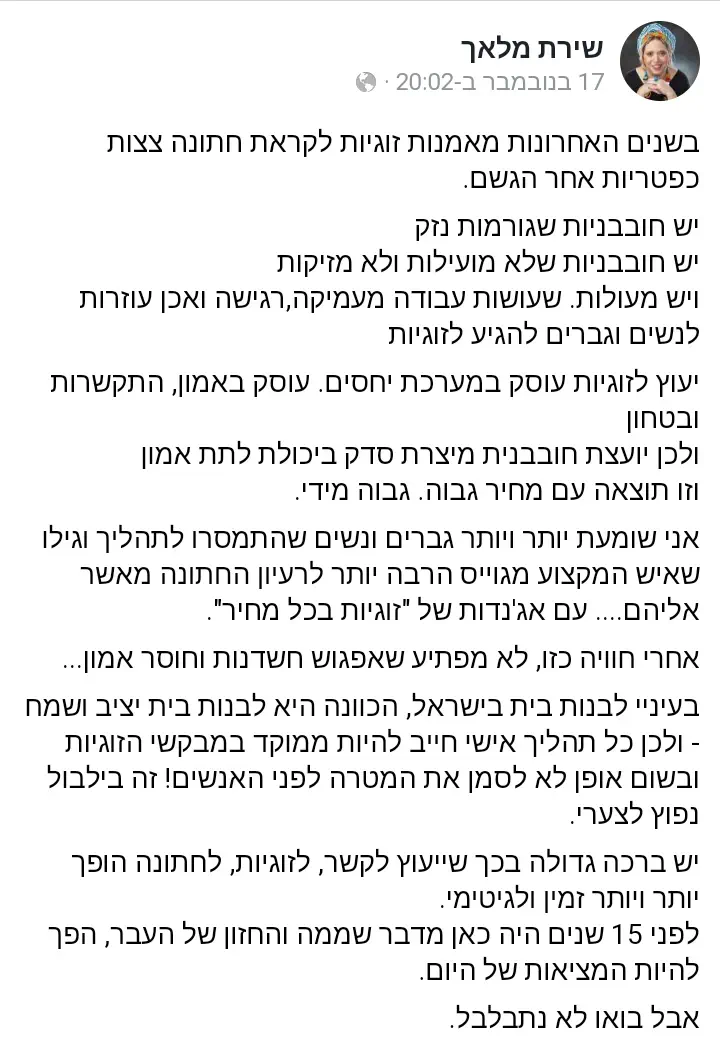🏼♀️ קצת עליה: שמחה, מצחיקה, מחוברת לקודש, בעלת נתינה, חייכנית ואופטימית, קלילה ואוהבת