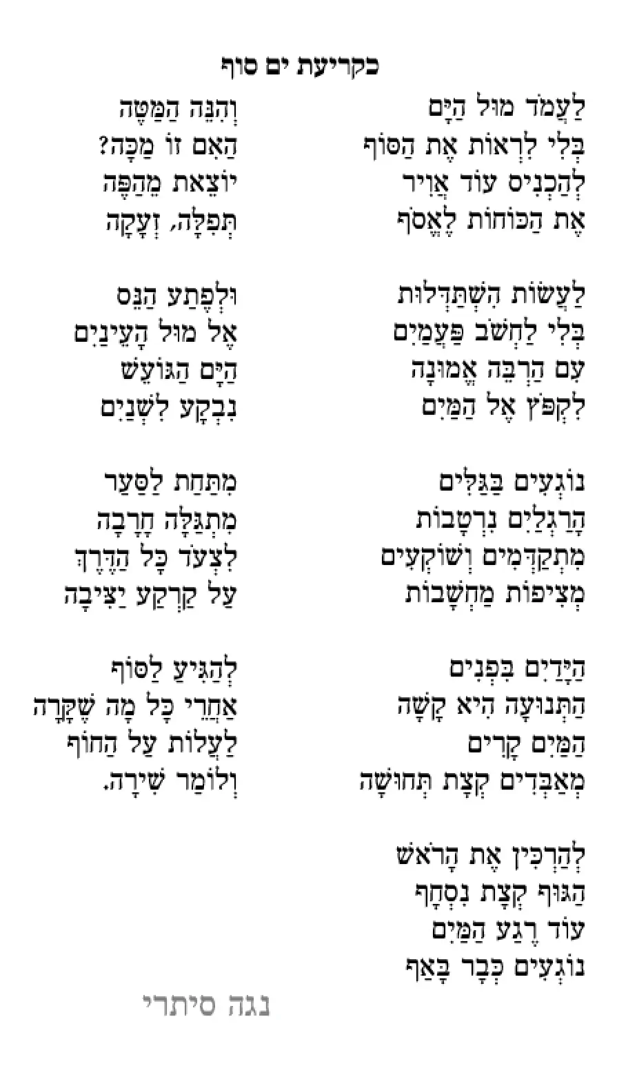 כמה רגעים לפני העיקול האחרון אל עבר השורה בה הסכימו להעביר את סעודת שבע הברכות האחרונה שלהם, הוא נאנח אל תוך השקט היישובי, שהחל להתמלא ברחשי החברה ההומה מאחת החצרות הסמוכות. "מה קרה?" היא שאלה בשקט, הם פסעו עוד כמה צעדים זה לצד זו עד שהאט נעצר. "את יודעת..." הוא ניסה לשוות לקולו נימה משועשעת, אך סיים בכנות "קצת מעיק עלי כל הקטע הזה של שבע ברכות". היא התנתקה מצידו ונעמדה לפניו כך שעדיין היו קרובים מאוד, עדיין אוחזים ידיים. "כל יום במקום אחר, עם אנשים אחרים.. וכל השמחה הזו, שוב ושוב, ואותם שירים, ועוד דברי תורה.." הוא לקח אוויר לאט ונאנח שוב, קצת יותר בקלילות, "לא יודע. אנ'לא מבין מה העניין וזה קצת מעמיס עלי". היא הנהנה בראשה, נותנת לו עוד כמה רגעים. "זה לא שאני לא שמח," הוא הוסיף במין התנצלות, ומיד האירו פניו, תוך שהוא אסף את ידה השנייה אל ידו התואמת, "להיפך, אני מאושר! אבל... לא יודע", סיים, כשעיניו פונות אל האספלט הדהוי.