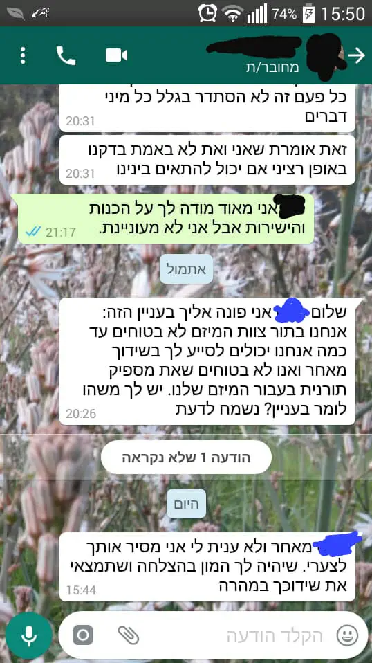 מאז לא דיברתי איתה בפלאפון. עניתי פעמיים בסמסים קצרים.