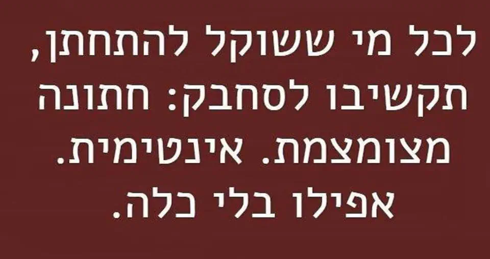 לא תהיה ברירה וכנראה שאתחתן בחתונה רגילהנפש חיה.
