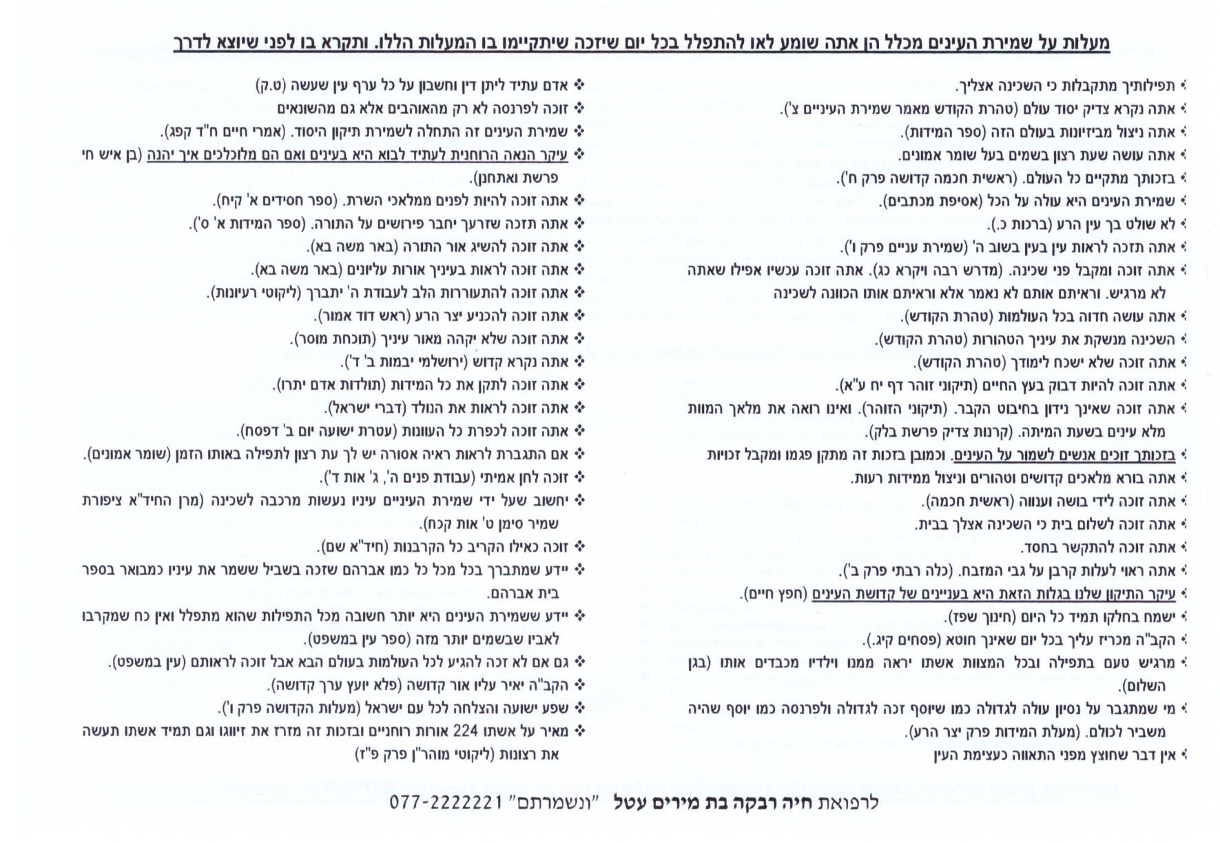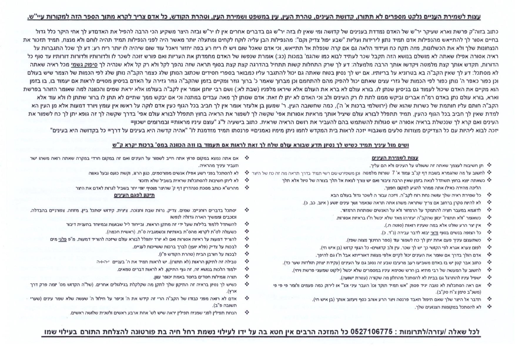 וגם לכל הבנים ששומרים עיניים תראו איזה זכות יש לכם ולמי שלא שומר, תקראו את זה אולי תבינו כמה שזה דבר גדול