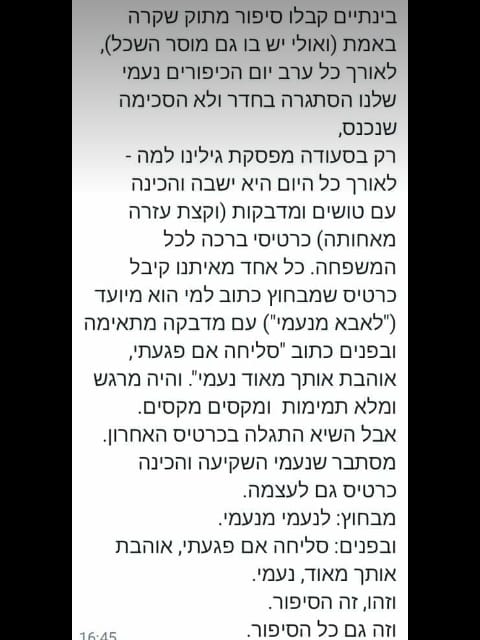 והיו רגעים שזה הגיע למצב שכבר באמת הפסקתי להתפלל על זה, באיזשהו מקום כעסתי על הקב"ה. והיו רגעים שהבנתי שזו המציאות שלי כרגע, וזה מה שהקב"ה נתן לי כרגע. ואחרי שניסיתי לכוון ולדייק ולחפש, פשוט הרפיתי, ונתתי לעצמי להיות. להנות מהרגע שעכשיו. אני עכשיו לבד- אז למה שלא אהפוך את זה לבסדר? כתבת שאת צעירה, ולכן אני כותבת ככה. אני מאמינה שבגיל מאוחר יותר זה יותר קשה להסתכל על הטוב שבמצב.