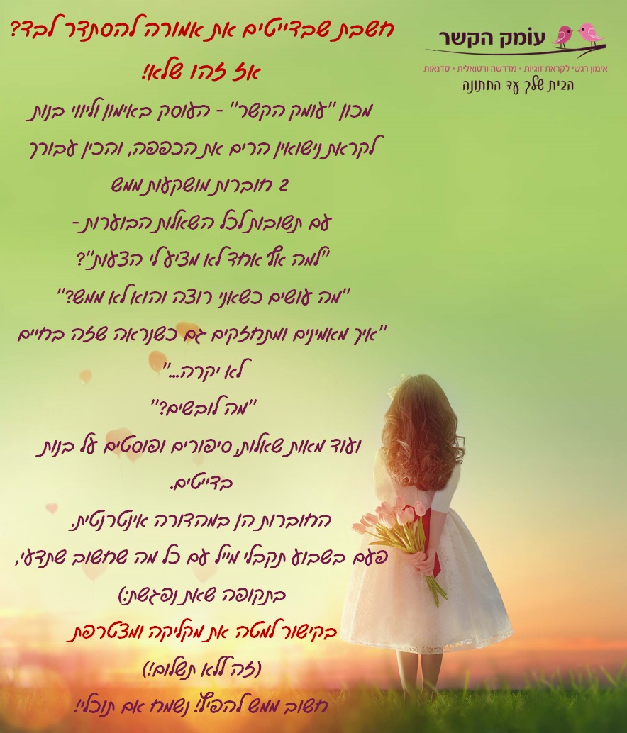 *אם השיחה עצמה זורמת, אז לא נורא שיש שתי דקות טיפה פחות זורמות, אם הן מצליחות להוביל לשעה+ של שיחת עומק חשובה.