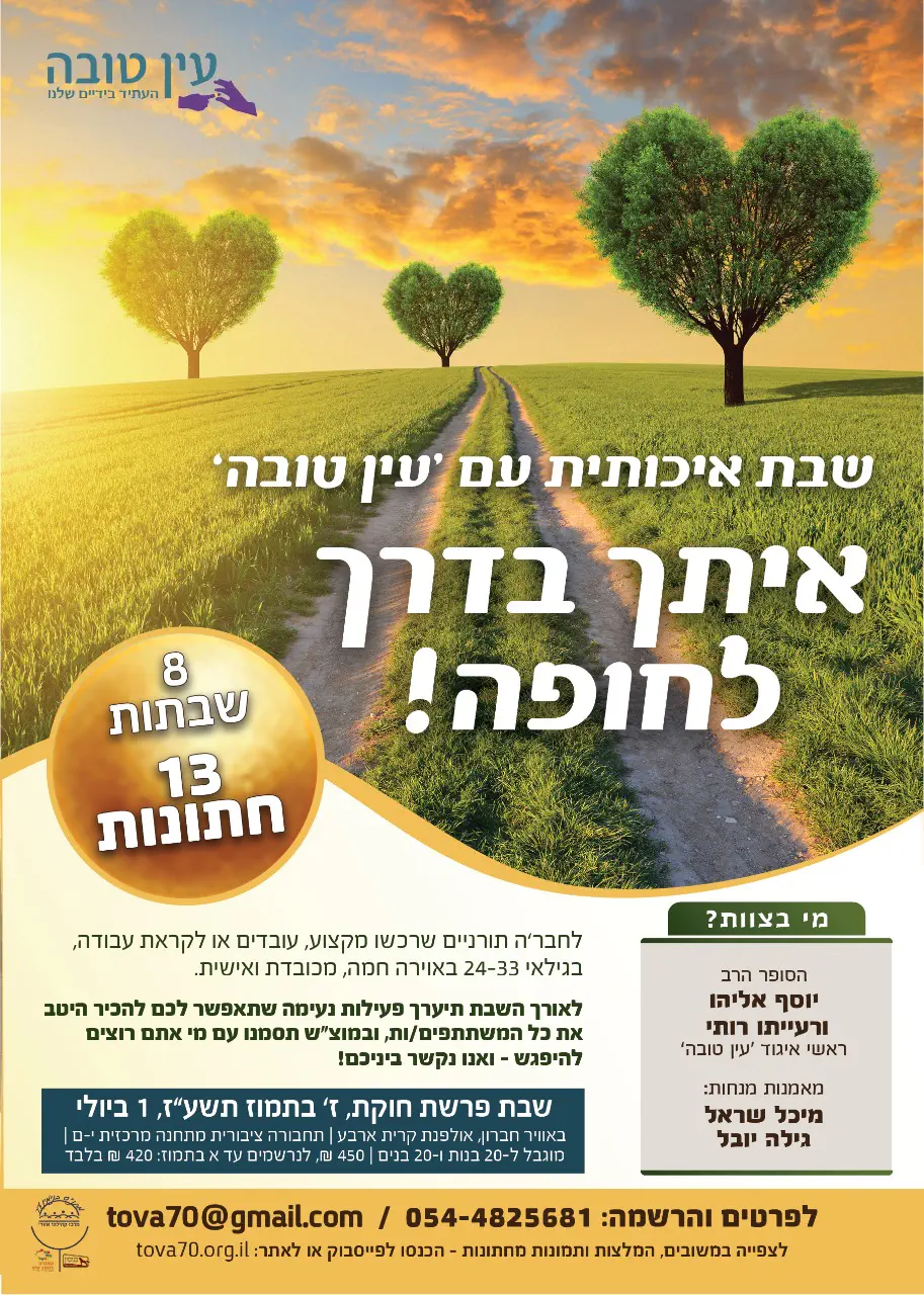 ב. תקבעו במקום שירגיש לכם נוח (המלצה שלי- מקום פתוח. יש משהו באווירה של המרחבים שפותחת משהו בנו)