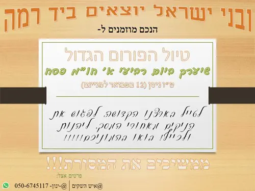 י"א-כ' בעז"ה בלנ"ד.חג שמח!