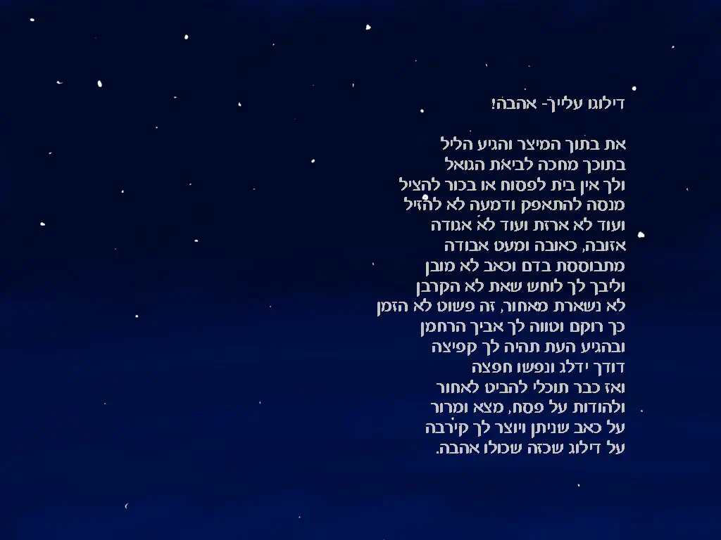 (זיהיתי משחק מילים ב"אזובה", לא בטוח שירדתי לסוף דעתך. זה שיר שמצריך מחשבה