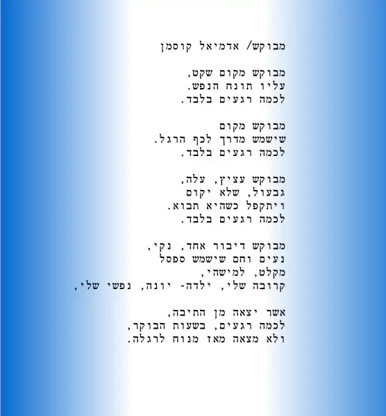 בכל שבוע במוצאי שבת נפרסם כאן בפורום יצירה שקשורה לנישואין, זוגיות, דייטים, כיסופים לבית, תקוות, אכזבות.