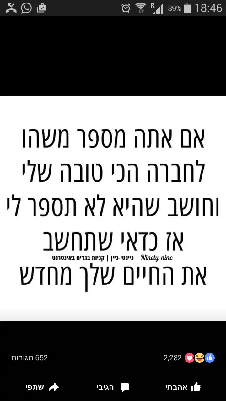 ואם זה כן יעבוד- חוששת ממש להתחרט שחתכנו. (למרות שמקווה מאד שזה דווקא יוביל לסגירה של המעגל הזה, שהוא מצא את האחת שלו וכו וכו. )