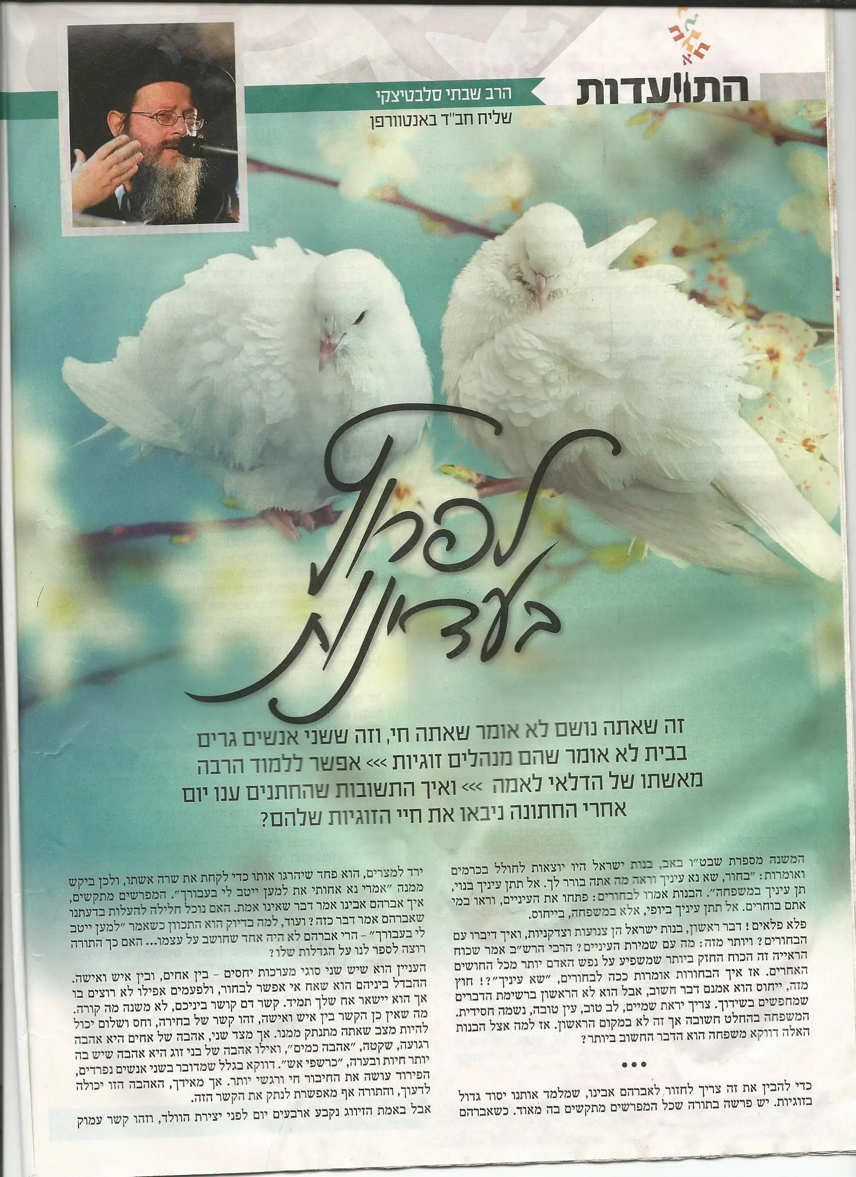 מצרפת עוד כתבה קצרה של הרבנית אורה ווינגט בנושא: