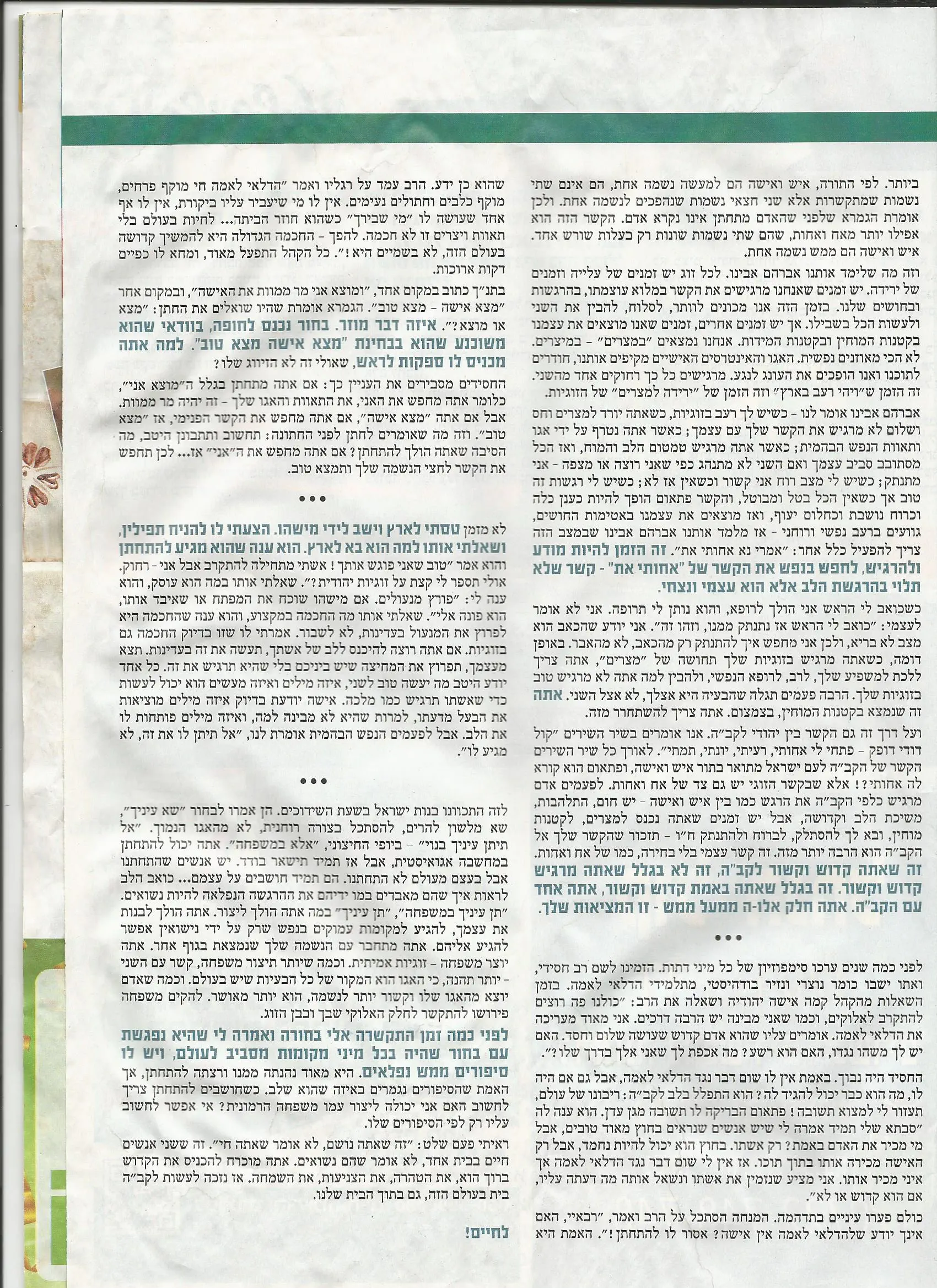 בשלב של נישואין- הקשר כבר אמיתי ושם יש עניין של עבודה אישית מול הבן זוג.. וניסיון לבוא אחד לקראת השני..