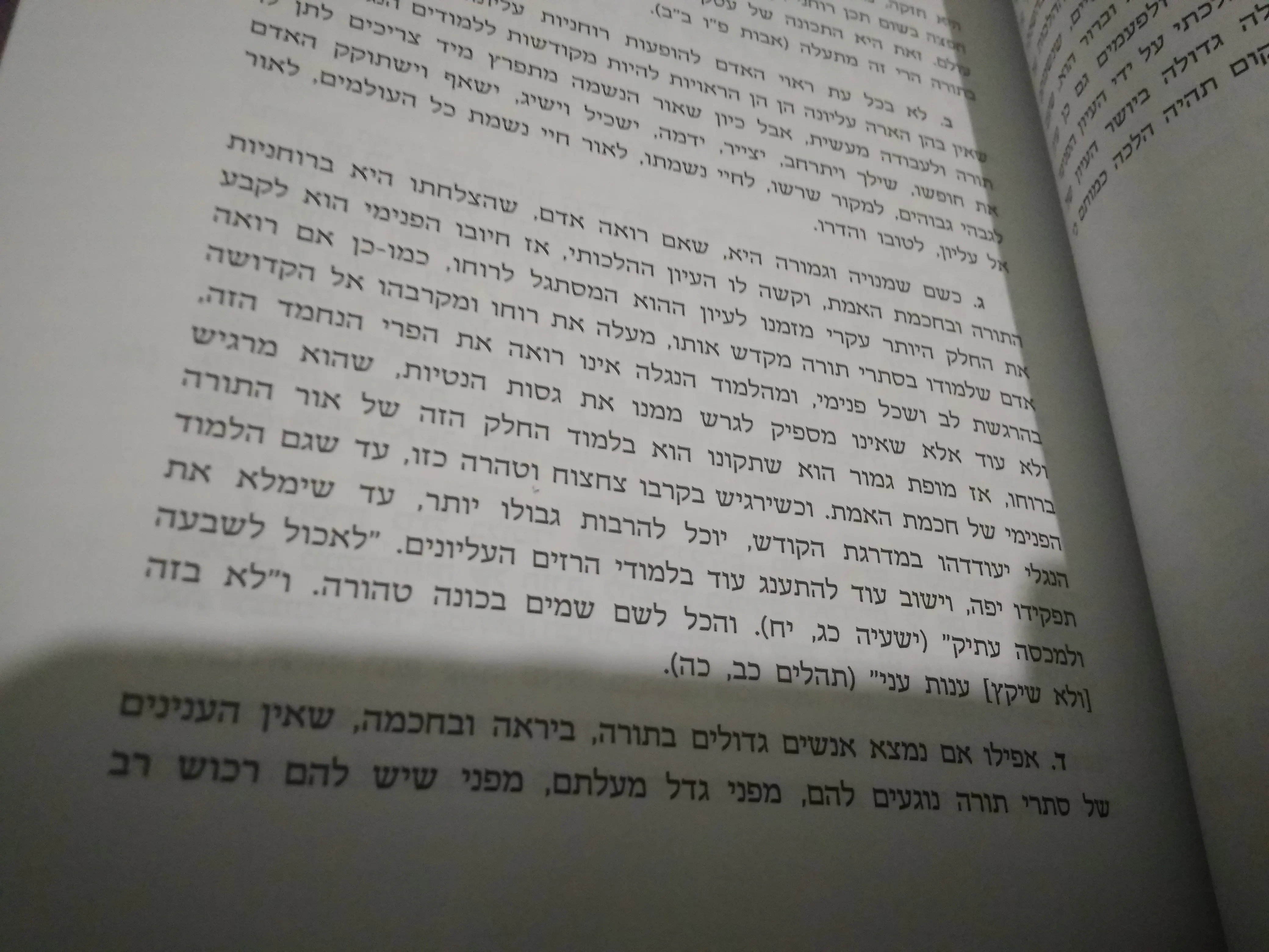 אני רוצה ללמוד. אני לומדת לבגרות ולתואר, אבל עדיין, אתה מרים את הספר ומשהו מרגיש לא נכון. ברור לי מה הרצון, וברור לי מה כן מרגיש בסדר וטוב ומנחם, ובה במידה אני יודעת שאני לא יכולה להרשות לעצמי את זה. אז שבת ושמחת ויום שחפץ בו ואני סוגרת את הגמרא, ואת הרשבא בכלל לא הוצאתי שלא אשבה, והולכת ללמוד לסופקורס. וטוב לי בידיעה שזה הדבר הנכון, וקשה לי להבין שזה הדבר הנכון.