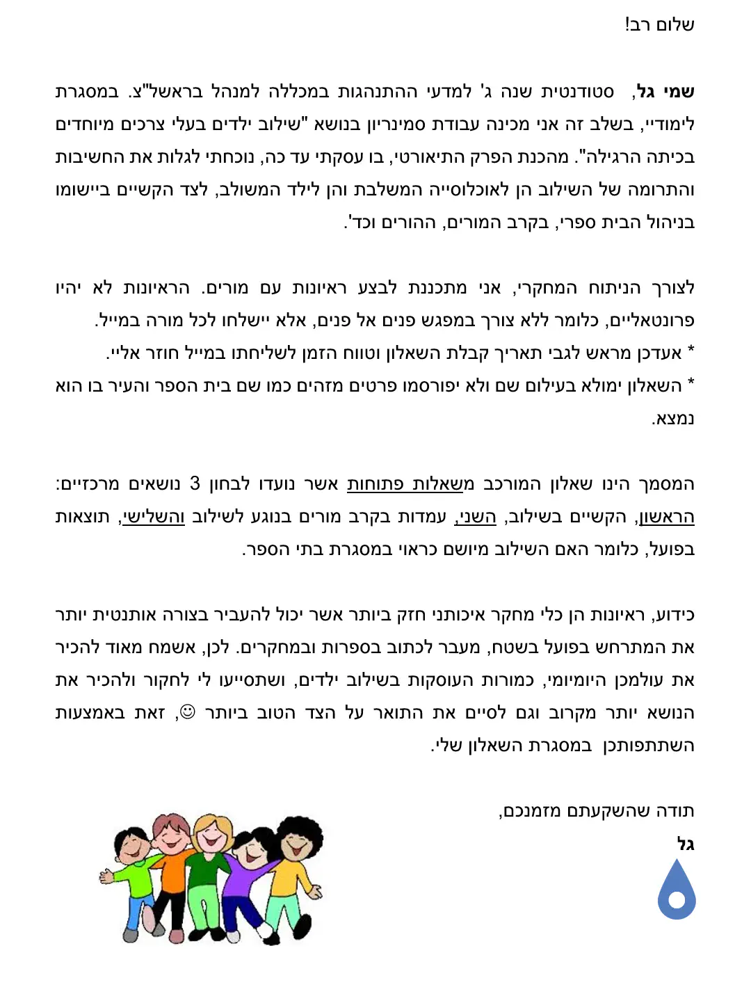 נשמח ממש לעזרה במילוי שאלון קצר לצורך עבודה סמינריונית....