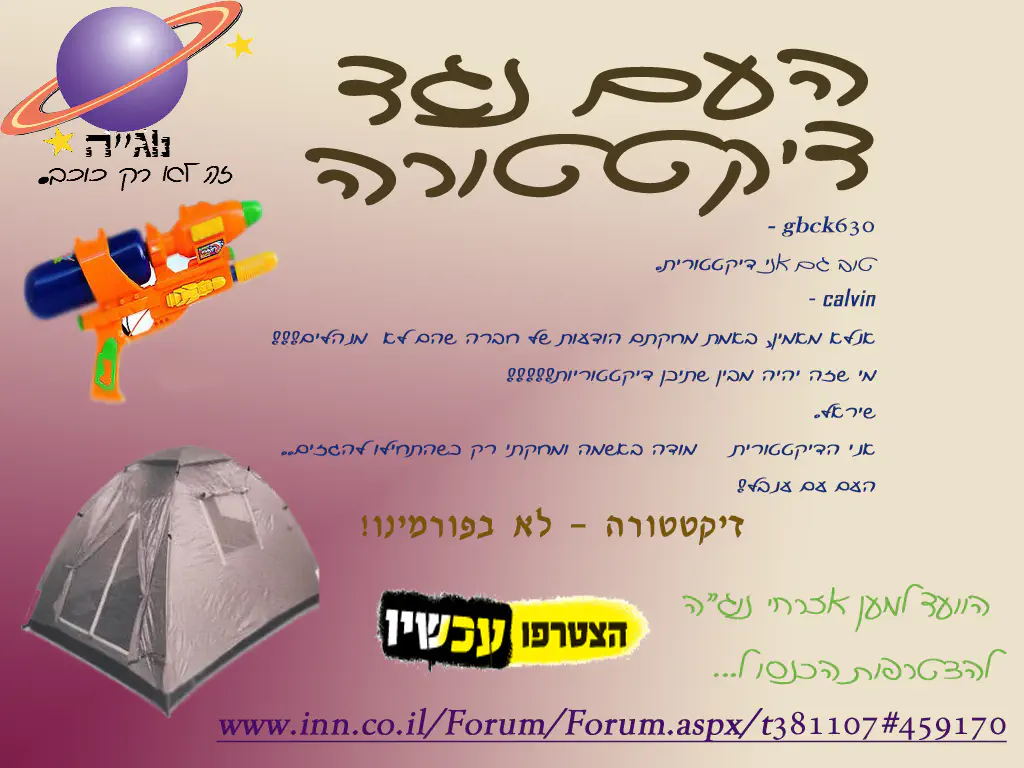אני הדיקטטורית |מודה ב"אשמה"|,ומחקתי רק כשהתחילו להגזים..העם עם ענבל!